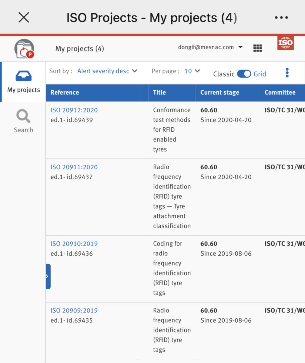 Four international standards for tires RFID electronic tags led by MESNAC Co., Ltd. (main drafted) and drafted by many countries, institutions and experts: ISO 20909:2019 Radio frequency identification (RFID) tyre tags, ISO 20910:2019 Coding for radio frequency identification (RFID) tyre tags, ISO 20911:2020 Radio frequency identification (RFID) tyre tags-Tyre attachment classification, ISO 20912:2020 Conformance test methods for RFID enabled tyres have all been released on April 20, 2020 and become an official international standard.