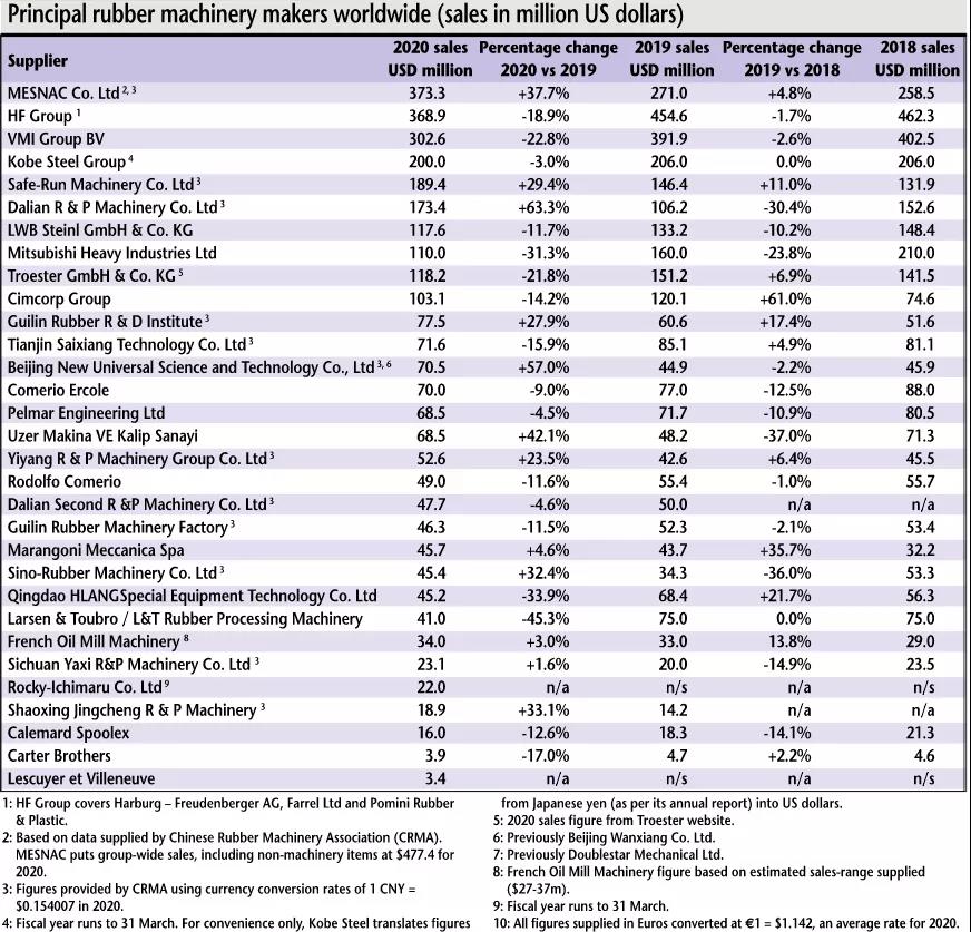 2021 Global Ranking of MESNAC Rubber Machinery Business